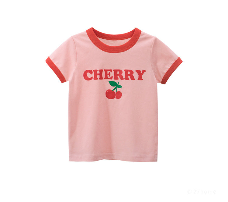 Girls Pink Cherry Cotton Kids Ringer T-Shirt (1-6 years)