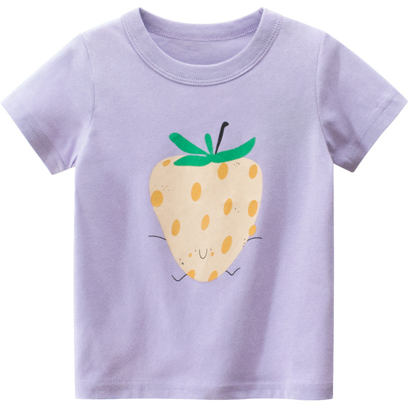 Strawberry in Purple Girls Cotton T-Shirt (1-10 years)