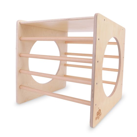With its durable and eco-friendly construction, the 60 x 60 x 60 cm cube is crafted from sustainable woods like birch plywood and beech wood and finished with non-toxic coatings for safe play and easy cleaning. Weighing 6 kg, it's lightweight enough to move yet sturdy enough to support up to 60 kg. For even more excitement, combine multiple cubes or integrate them with other Pikler pieces to create a dynamic play gym that grows with your child's abilities!