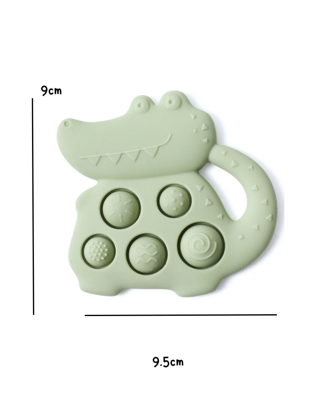 The Crocodile Push Pop Baby Silicone Sensory Teether is not just about relief; it adds an element of play with its exciting push pop feature.