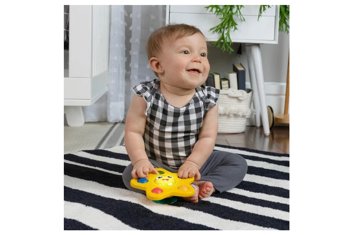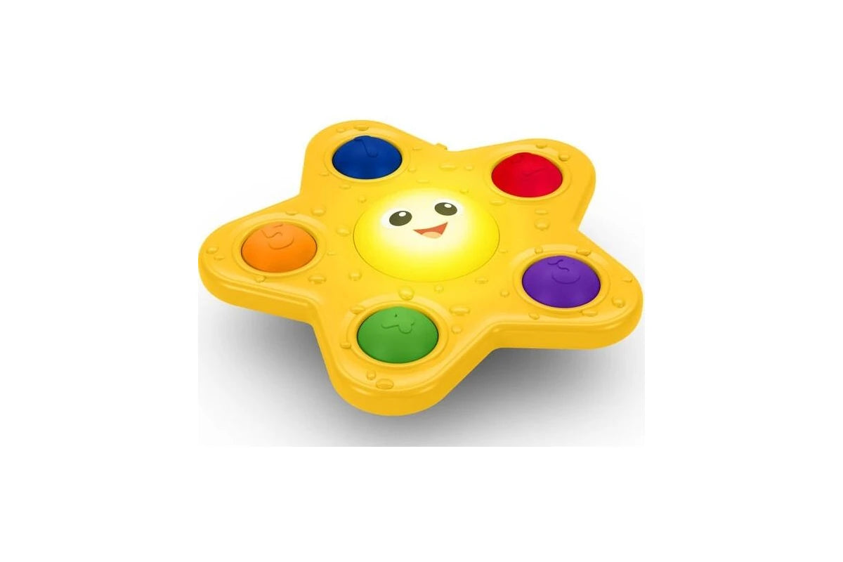 - Baby will love to learn colors and numbers 1 through 5 on each of the bubble poppers and light up the starfish’s face with a gentle spin.