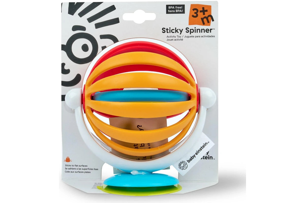 From mealtime to travel time, your baby will be utterly captivated by Baby Einstein’s Sticky Spinner toy.