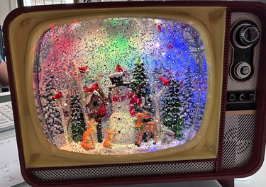 Enjoy the charming array of classic Christmas melodies that play softly, creating a delightful backdrop for your gatherings. The Vintage TV Christmas Musical Snow Globe is perfect for family events, quiet moments, or as a centerpiece during festive dinners.