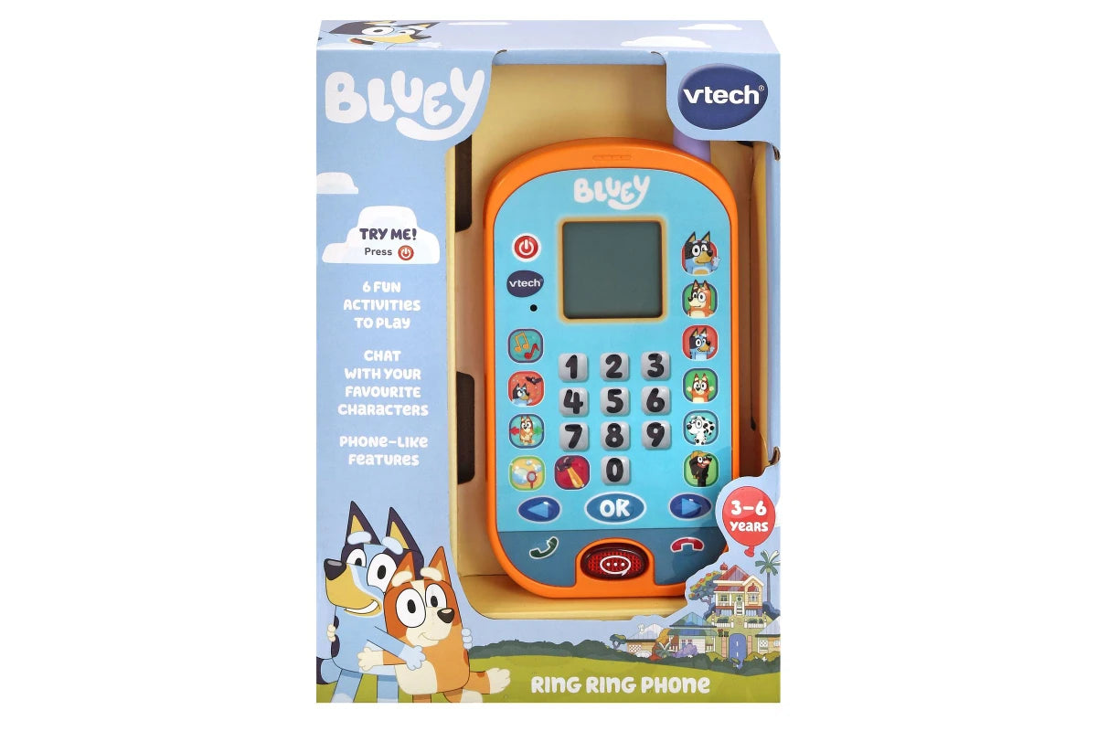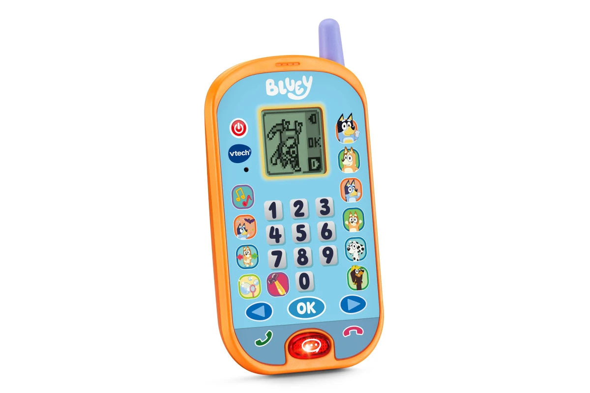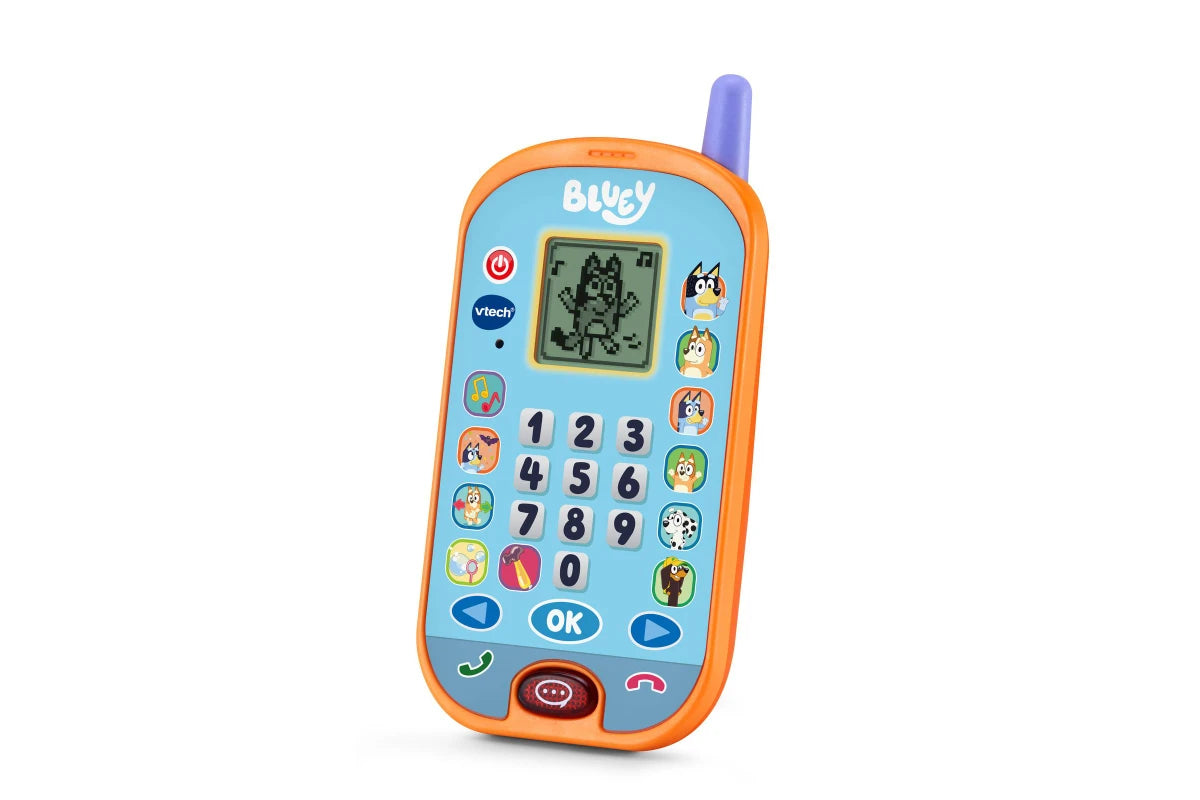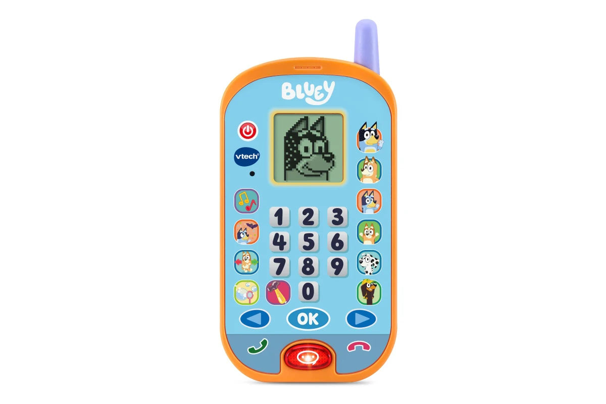 Play two voice messages from Bluey and Bingo or change the ringtone, brightness and more just like a real phone