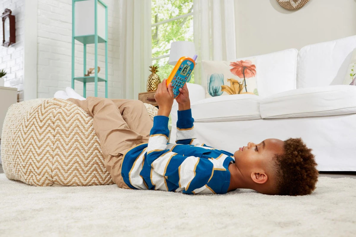 Change the ringtone, brightness and more, just like a real phone. Play four games that feature themes from different episodes. If Bingo is in a bad mood, cheer her up by pressing the number buttons to play music she can dance to. Use the arrow buttons to help Bingo do a handstand. When Bluey pretends to be a fruit bat, press the arrows to help her catch fruit to eat. Help Bluey blow bubbles by blowing into the microphone. Let’s do this!